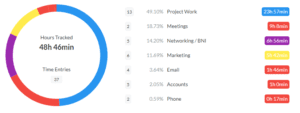 Of course, the flip side of knowing how you spend your time is that you can highlight what you are not doing. During the first week, I tracked ZERO minutes on Marketing and over 8 hours on email.
