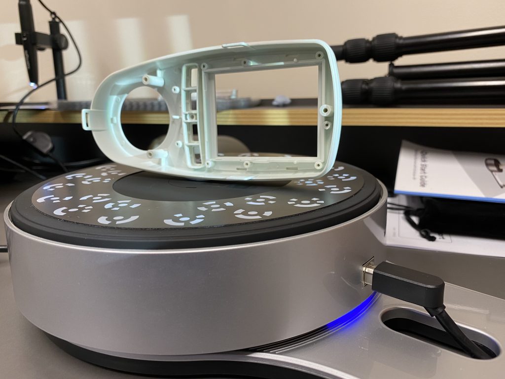 Shiny parts are challenging because they reflect too much light, meaning the scanner can’t see them correctly.