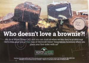 Another benefit of being located at Heywood House is the delicious homemade treats by Heywood Sweet Temptations. We will send a box of brownies to welcome new clients, a gift not to be missed! Please see the advert for full details and get in touch to discuss your project requirements.
