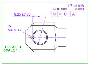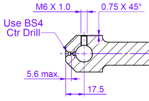 The bearing end of the piston has 2 holes that overlap. The smaller hole is also taped from either end. This may look difficult to manufacture. But if the smaller hole is drilled and tapped on both sides before starting the larger hole then it is relatively simple to machine. The biggest challenge will be creating the 16Ø H7 tolerance. Perhaps it would be best to start by drilling a smaller hole (14Ø would be ideal). The hole could then be opened with a 5/8″Ø (15.875mm), or similar end mill. This will leave less than 0.2mm to remove using an adjustable boring head on a milling machine.